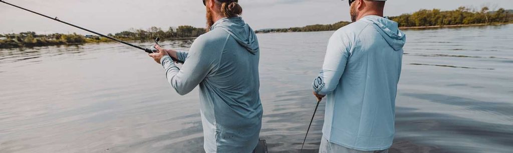 “Yeah, at first, I thought these guys wearing long sleeve hooded performance shirts were just being trendy until three or four years ago when I put one on while it was 90+ degrees. It was amazing how a little perspiration on the shirt makes you cooler. Then in the winter, it makes for solid base layering beneath a jacket. I wear them like 200 of the days I am out fishing each year,” he said.