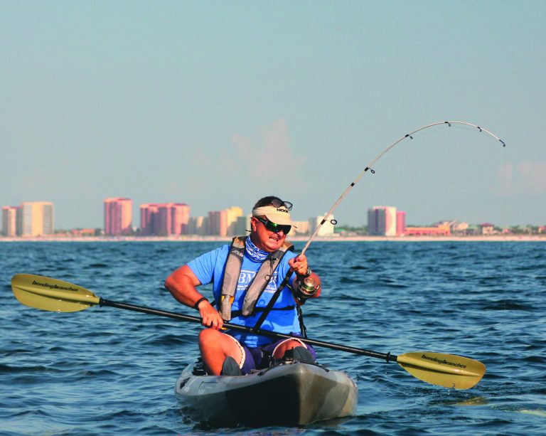 Kayak Anglers Find Big, Mean Fish Off the Beaches It’s nice out here a half-mile off the beach at Orange Beach. The breeze is light,