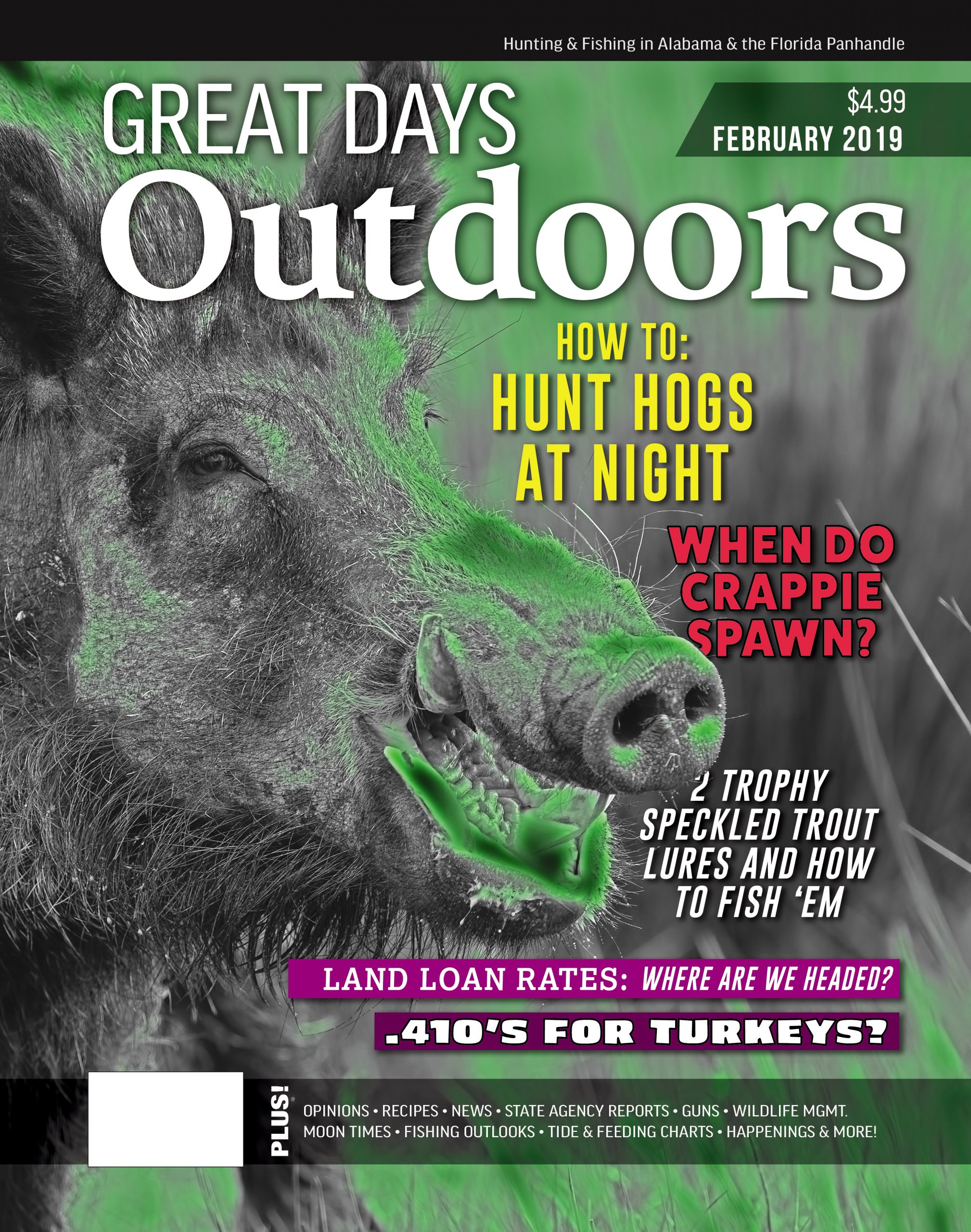 This article first appeared in the February 2019 print issue of Great Days Outdoors Magazine. For more great hunting and fishing content for the deep South, subscribe to Great Days Outdoors print and digital editions or click the image to download this issue.