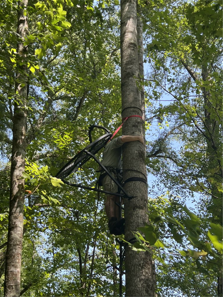 My favorite part of the setup is the included red easy-hang strap. This simple design makes getting the stand to height and into position a sweat-free task. Just use a sturdy rope, and you can haul this treestand into position without any help (though I highly recommend hanging treestands with a buddy). Here is a link to the stand setup manual to give you an idea of how it’s positioned. This was my biggest concern before owning one of these stands, but the design and instructions make it simple.